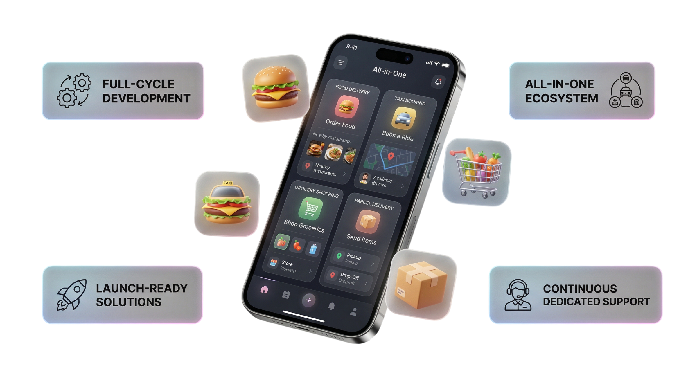 We build high-performance, scalable on-demand applications designed to match your unique business goals. From ride-hailing and food delivery to healthcare, e-learning, and beyond, our solutions are inspired by leading platforms like Uber, Zomato, and Airbnb—crafted to deliver seamless user experiences.